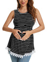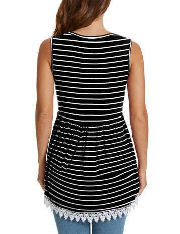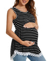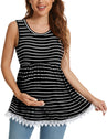 Xpenyo Womens Maternity Tank Top Sleeveless Lace Crochet Trim Peplum Cami Shirts Black White Striped M