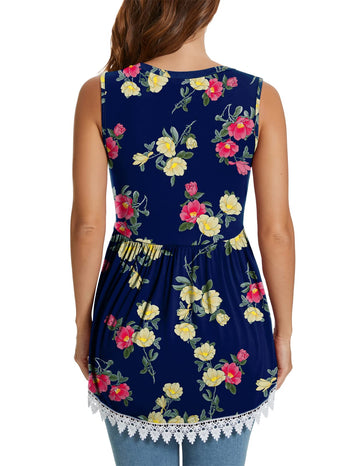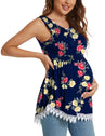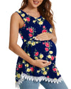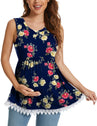 Xpenyo Womens Maternity Tank Top Sleeveless Lace Crochet Trim Peplum Cami Shirts Camellias Blue S