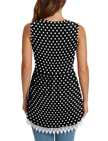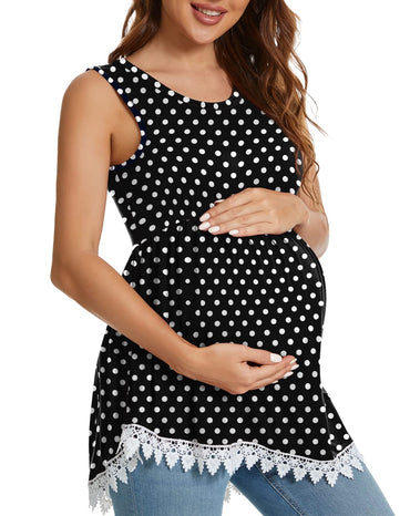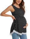 Xpenyo Womens Maternity Tank Top Sleeveless Lace Crochet Trim Peplum Cami Shirts Polka Dot Black XL