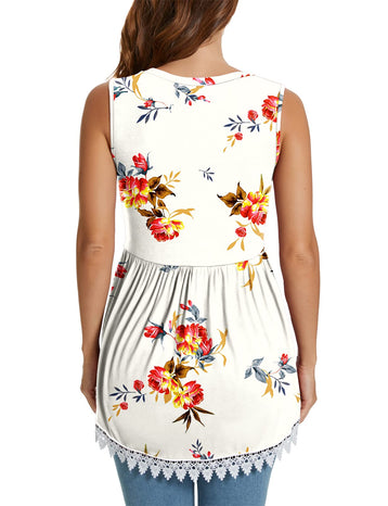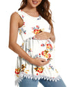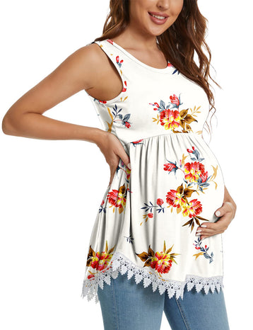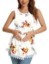 Xpenyo Womens Maternity Tank Top Sleeveless Lace Crochet Trim Peplum Cami Shirts Rose Floral White S