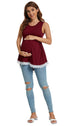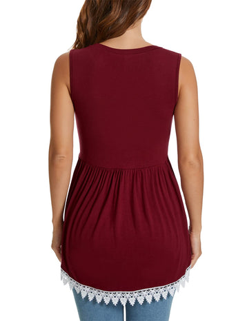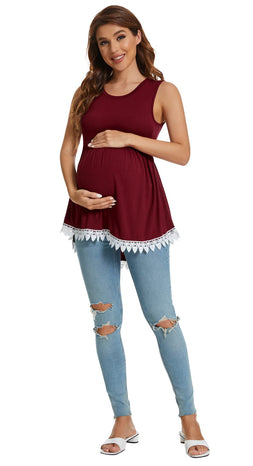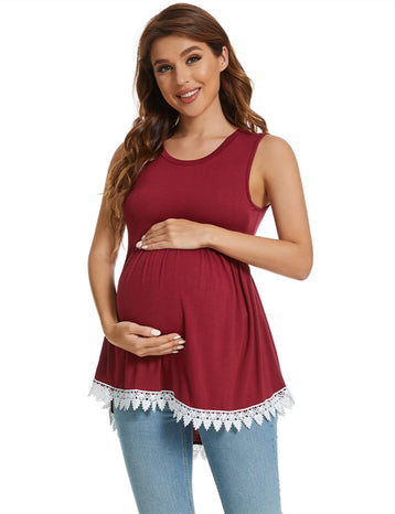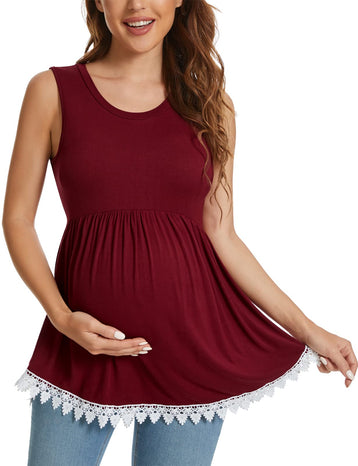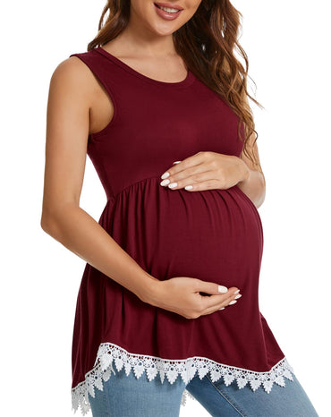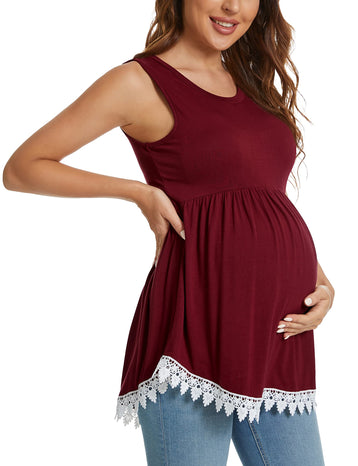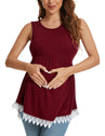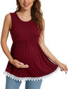 Xpenyo Womens Maternity Tank Top Sleeveless Lace Crochet Trim Peplum Cami Shirts Wine Red XL