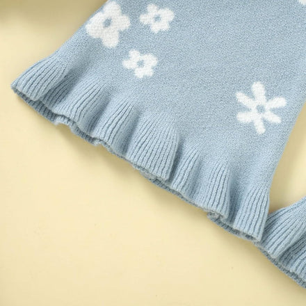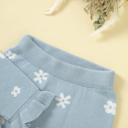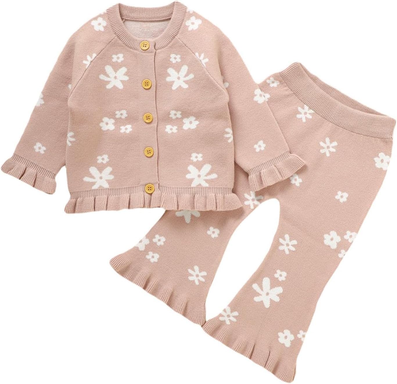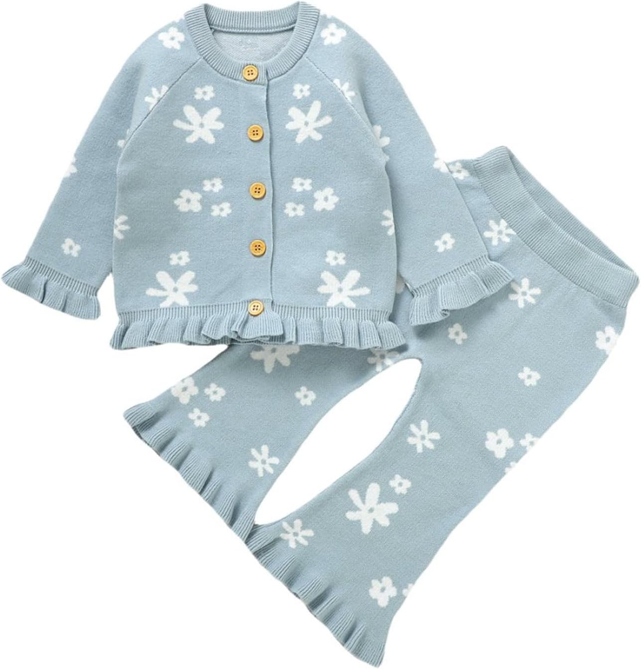 Yccutest Infant Girl Sweater Set 2 Piece Fall Winter Outfit Baby Girl Floral Knit Cardigan Top Flared Pants Toddler Clothes