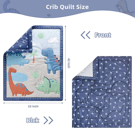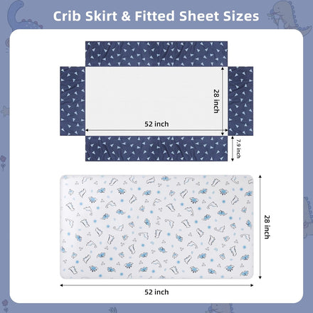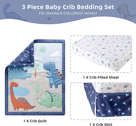 YCDTMY 3 Piece Crib Bedding Set for Boys - Baby Crib Dinosaur Bedding Set with Fitted Crib Sheet, Dust Ruffle Comforter, for Newborn, Infant & Toddler