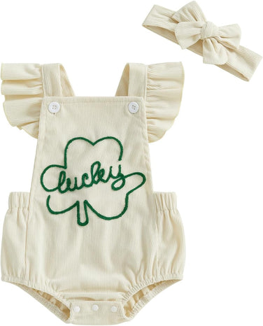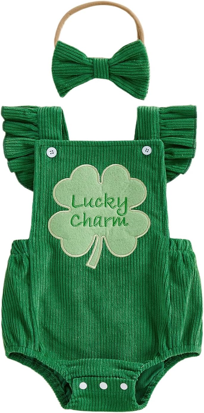 YINGISFITM My First St Patricks Day Baby Girl Outfit Newborn Overalls Lucky Charm Bubble Romper Irish Clover Infant Clothes
