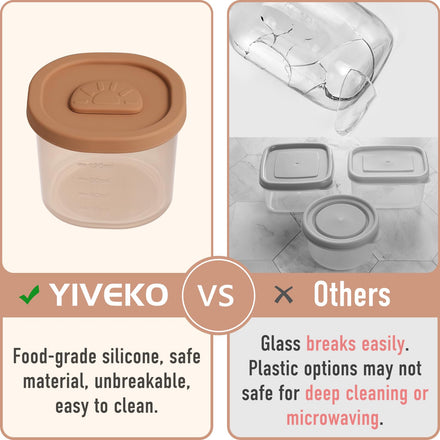 • Durable and Easy to Clean: Unlike glass and plastic baby food containers, our silicone material is safer, more durable, and resistant to drops. It does not deform like plastic. The smooth silicone surface is easy to clean and dishwasher safe. Our baby storage containers are ideal for storing baby food, snacks, ice cream, or milk, making them convenient for both home use and on-the-go.