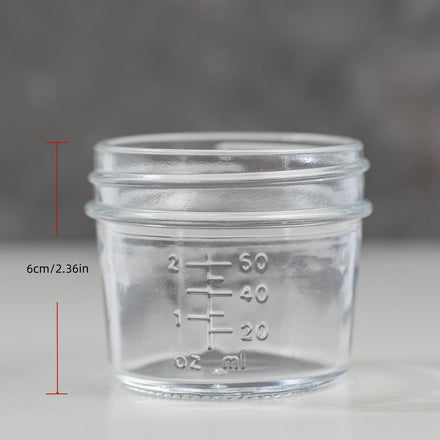 • Package Includes:6 x 4 oz regular mouth jars with graduated markers,. Perfect for everyday food preparation. Engraved measurements allow for quick and accurate filling to the desired capacity. Fill the entire jar to a capacity of 4 oz. The graduated markings on the jar show up to 2 oz.