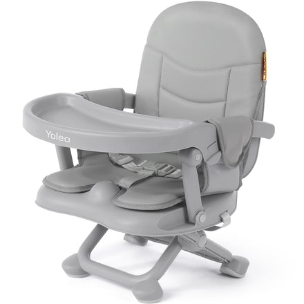 YOLEO Baby High Chair Booster Seat for Dining Table, Adjustable Height Travel Booster Seat with Tray, Toddler Booster Seat with Cushion Easy Clean(Grey)