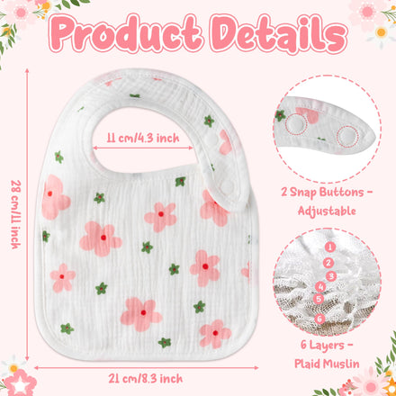 Zainpe 6Pcs Snap Muslin Cotton Baby Bibs Flowers Strawberry Patterns Infants Drooling Bib Soft Absorbent Adjustable Feeding Burp Cloths for Newborns Boy Girl Toddlers Teething Eating 0 to 36 Months