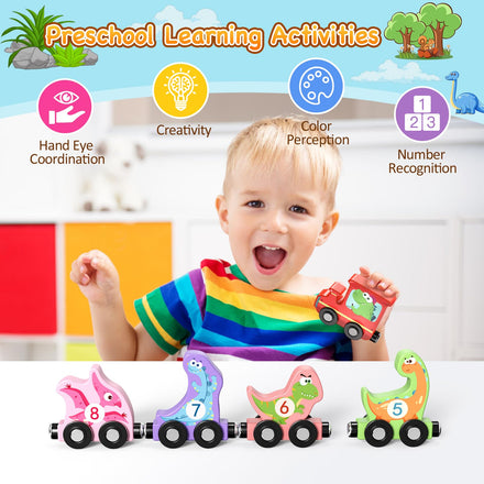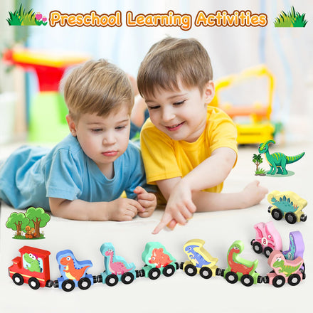 Zeoddler Toys for Toddlers, 11 Magnetic Wooden Dinosaur Train Set, Montessori Toys for Toddlers, Preschool Educational Material for Kids, Birthday Gifts for Boys, Girls