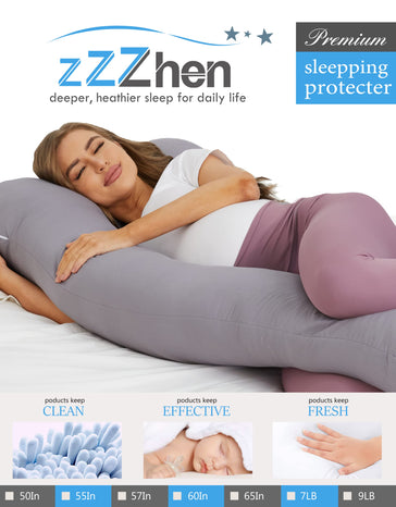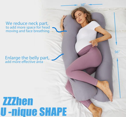 ZZZhen Pregnancy Pillow for Sleeping, U Shaped Maternity Pillow - 56 Inch with Grey Microfiber Removable Cover, Multi- Use and Support Back, HIPS, Legs, Belly for Pregnant Women Sleeping